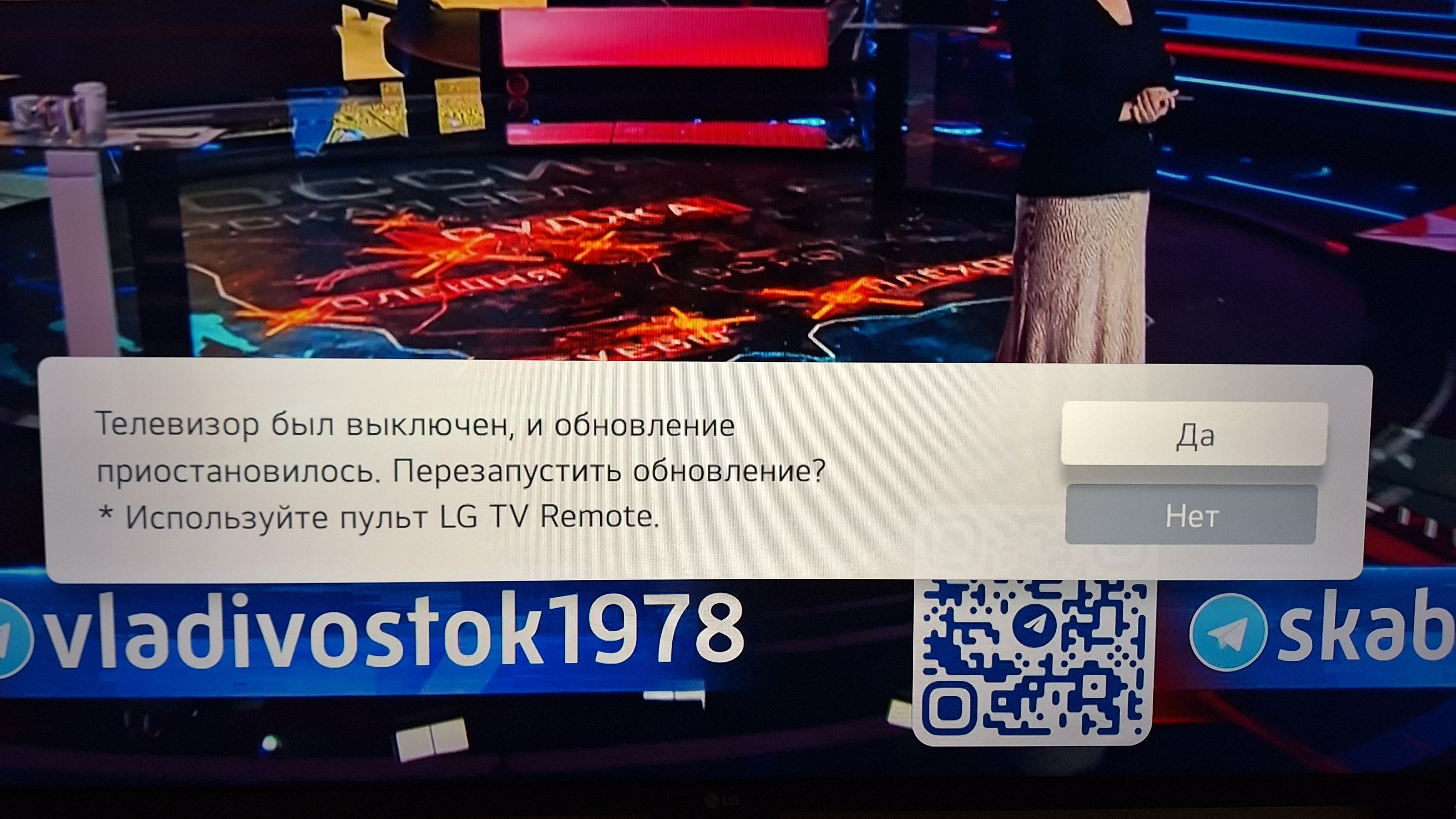 Увы, выскакивает. Имеется еще один ТВ LG, на нем все в порядке. А на этом вот неприятность, причем не при каждом включении (надпись появляется, только при включении). Где-то, видимо, сохранились остатки сведений о незавершенном обновлении (как оно могло вдруг начаться? ). Почистить бы систему, что-ли...