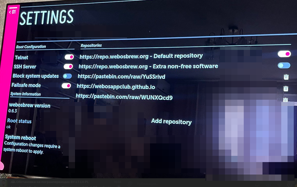 Доброе утро! Появилось вот такое сообщение. Как это убрать? На роутере Keenetic сделаны нужные дополнения для недопущения обновлений, автоматическое обновление в ТВ отключено. Имеется рут. ТВ 43UR81006LJ. Спасибо!