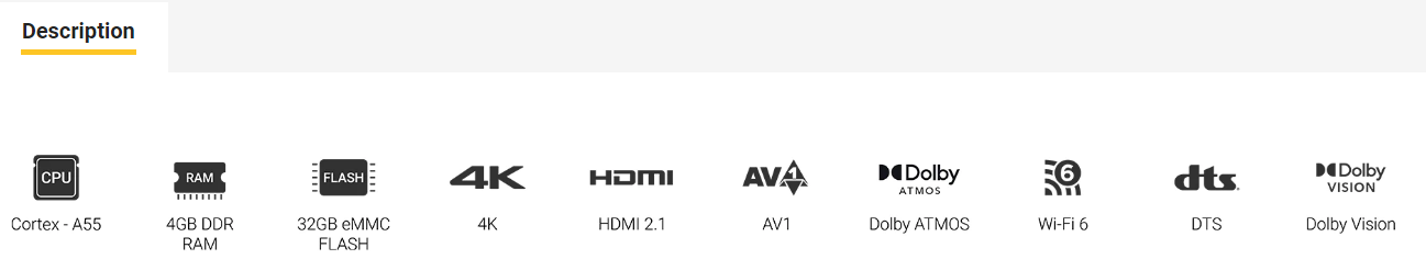 - Воспроизведение видео файлов в формате Ultra HD 4Kp60 с Dolby Vision.
