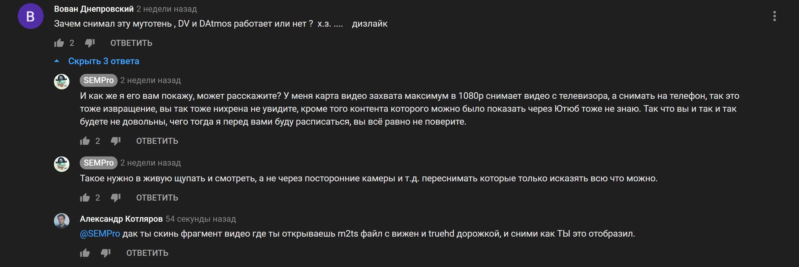 Я о том же, все выбирает и видно, что тыкает, а потом экран с DV, но откуда туда поступил сигнал (что за источник) - неизвестно, а время дано, где его фразы с оправданиями почему он это типа не тестирует. Все пока пахнет проплаченной рекламной залепухой, нужны реальные тесты.