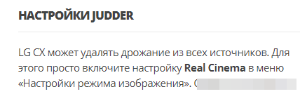 https://www.rtings.com/tv/reviews/lg/cx-oled/settingsLG: Перейдите в Меню- Изображение- Настройки режима изображения и установите для "Реальный кинотеатр" значение "Вкл. "