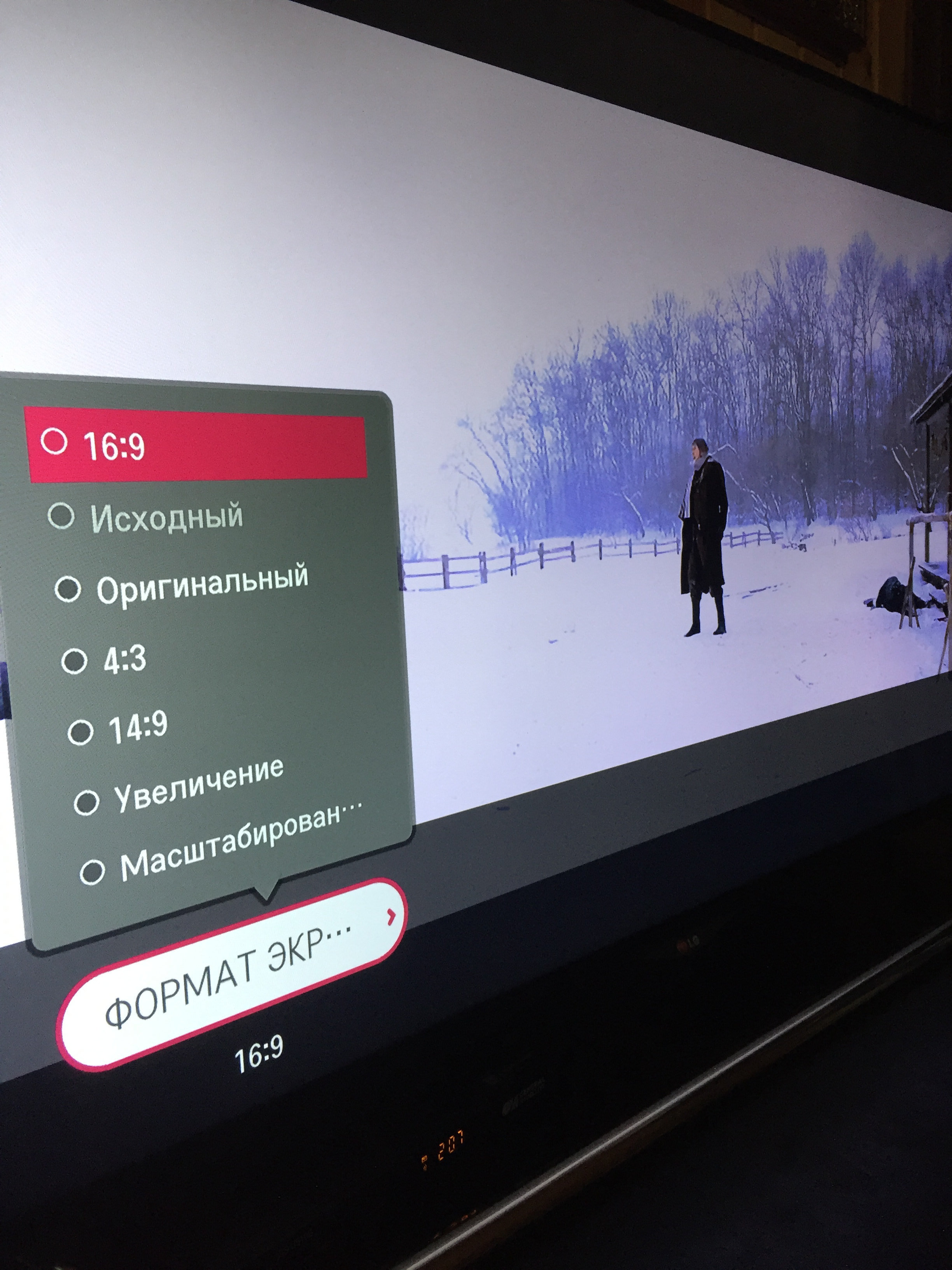 Телевизор LG 39LB650V. Используется в основном для просмотра фильмов через USB, с внешнего жесткого диска (фильмы в хорошем качестве, Hd-рипы в формате MKV) Многие фильмы идут в киношном формате 16 на 9 (т.е. изображение не на весь экран, а сверху и снизу черные полосы). В настройках экрана предлагается только три варианта формата экрана: ОРИГИНАЛЬНЫЙ, НА ВЕСЬ ЭКРАН и УВЕЛИЧЕНИЕ. При использовании НА ВЕСЬ ЭКРАН, лица получаются очень вытянутыми, не возможно смотреть. Настройка УВЕЛИЧЕНИЕ так же растягивает изображение на весь экран и лица вытягиваются, хотя и меньшей степени.