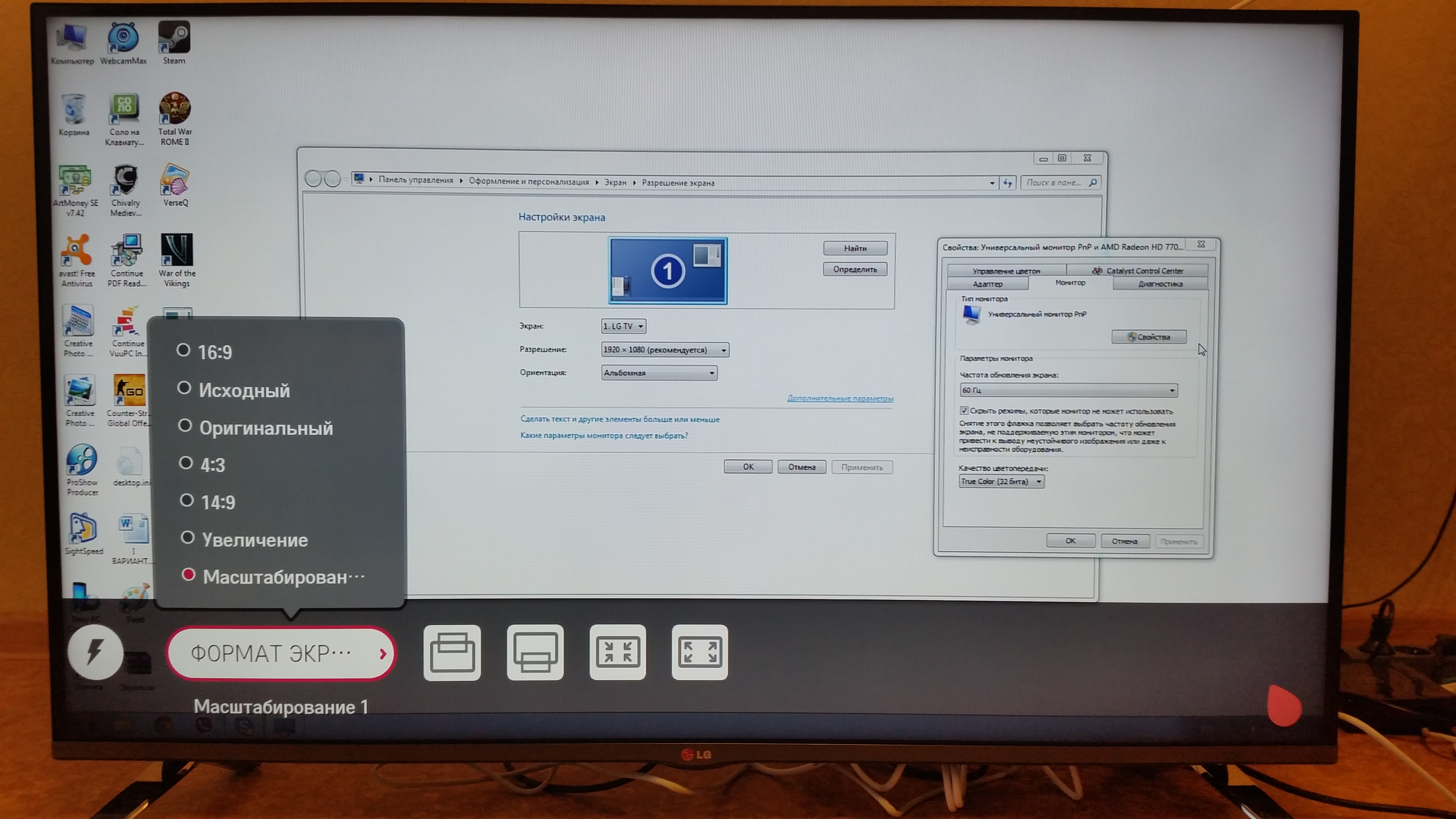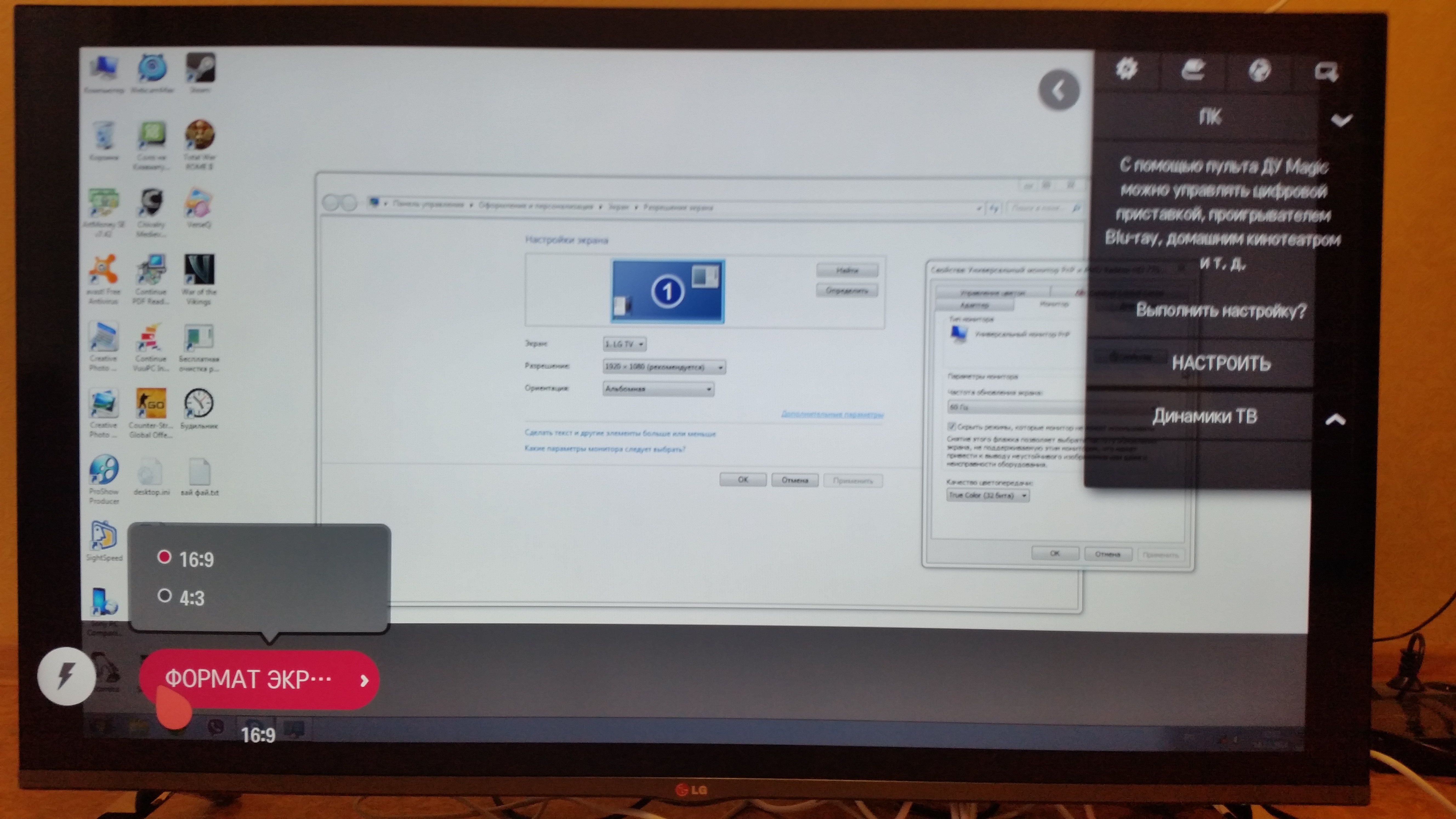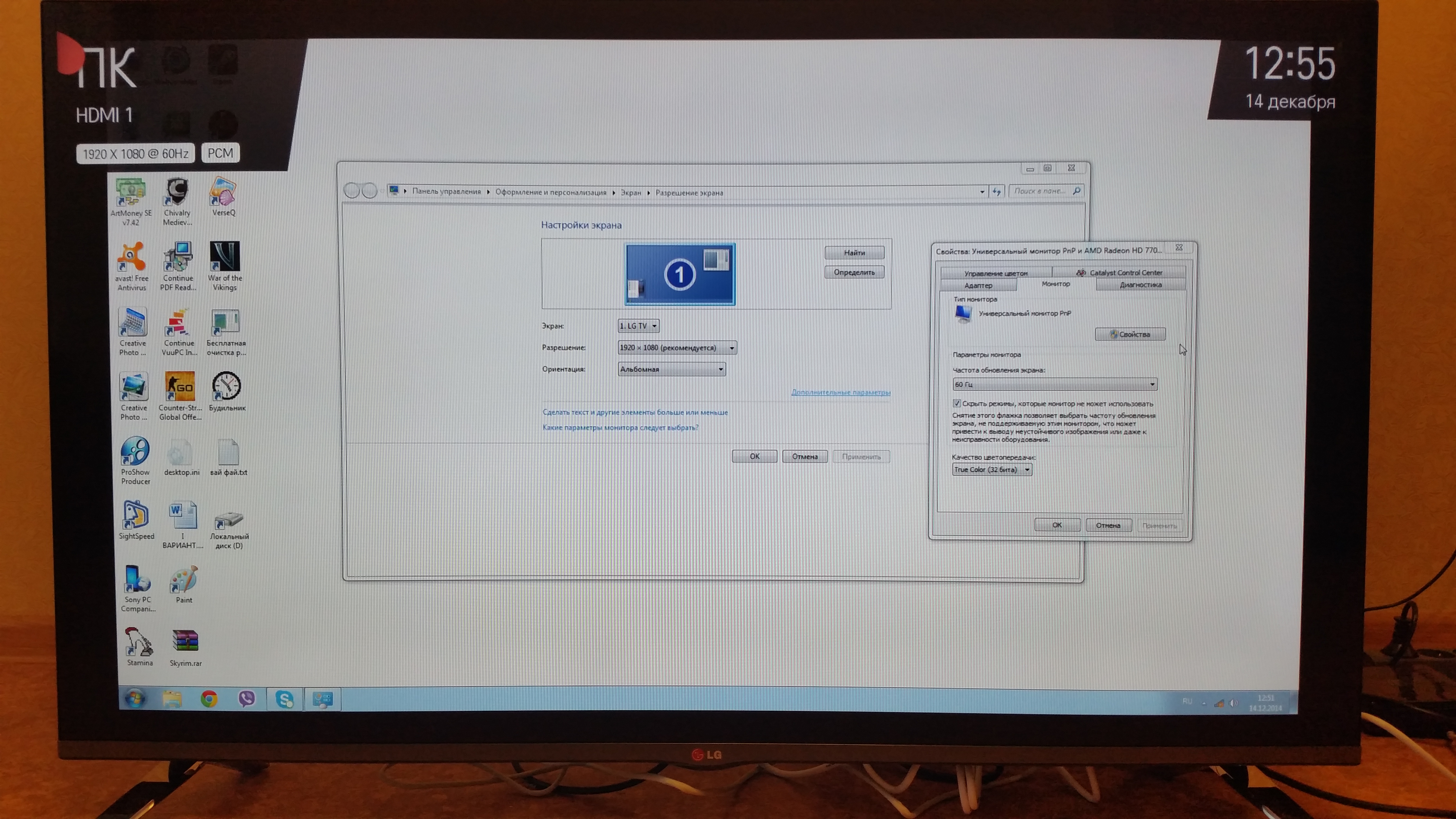 Подключаю ПК к ТВ через HDMI, разрешение картинки на ТВ и ПК 1080 (60Hz). ТВ LG 47LB673V, прошивка 04.35.30.