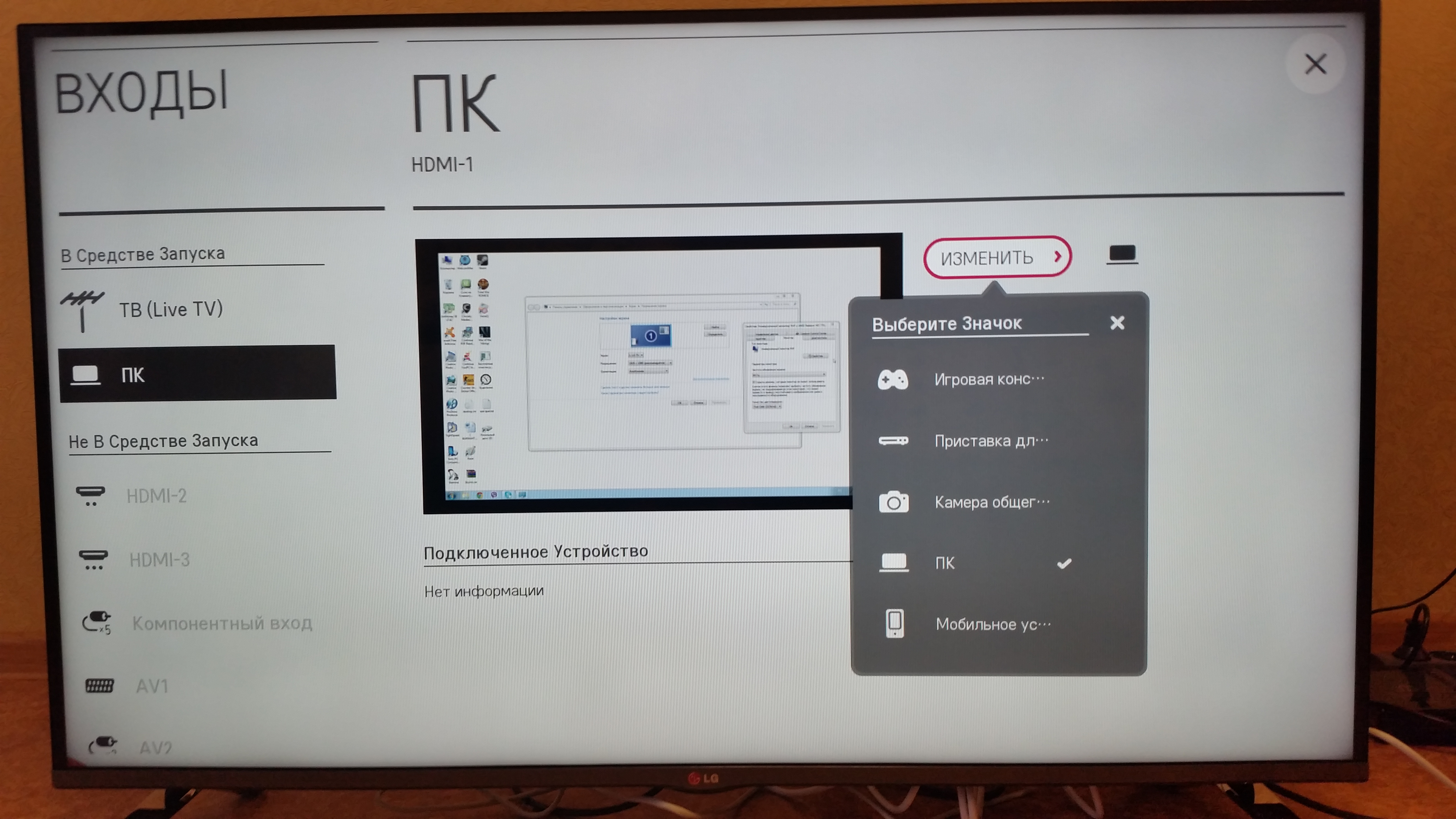 В настройке входов можно поменять значек подключаемого устройства. Конкретная разница идет между ПК и всем остальным.