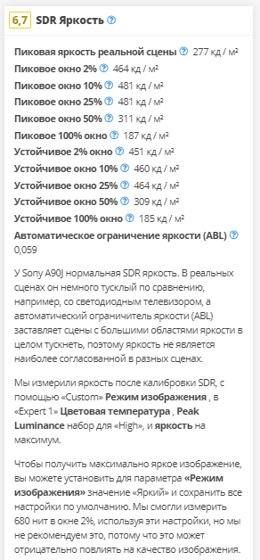 Мы измерили яркость HDR до калибровки, используя «Custom» Режим изображения с яркостью, с максимальным, Контраст в «90» (по умолчанию), Цветовая температура установлен в «Expert 1», и с помощью «Градация Preferred» настройки в Меню HDR Tone Mapping.
