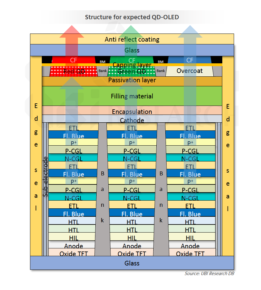 На заключительном семинаре, состоявшемся во второй половине 2020 года, UBI Research прогнозировала, что QD-OLED Samsung Display будет производить 200 000 единиц в 2021 году, 600 000 единиц в 2022 году и 800 000 единиц в 2025 году. Однако, как объявила Samsung Display на конференции во втором квартале. Он также представит монитор с меньшим QD-дисплеем, чем телевизор, производство, как ожидается, будет варьироваться в зависимости от пропорции продуктов.