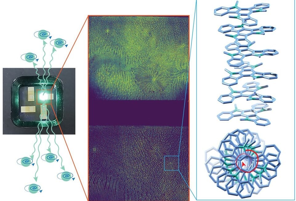 "Мы фактически переработали стандартный рецепт создания OLED, что позволило нам внедрить хиральную структуру в стабильную, некристаллизующуюся матрицу, " — поясняет соавтор исследования Ритупарно Чоудхури из Кембриджа.