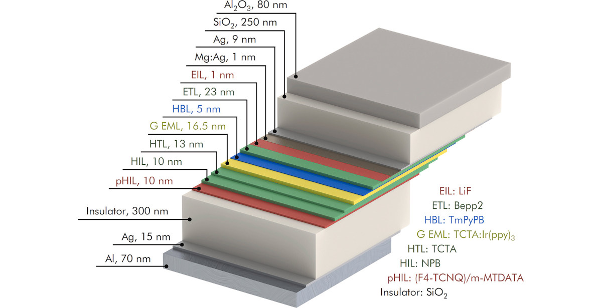 Исследователи из Российской академии наук и Московского политехнического университета разработали принципиально новую структуру катода для OLED-экранов, увеличивающую энергоэффективность в 10 раз. Суть открытия в использовании двухслойного покрытия: сверхтонкий 1-нанометровый слой сплава магния и серебра (Mg:Ag) сочетается с 9-нанометровым слоем чистого серебра.