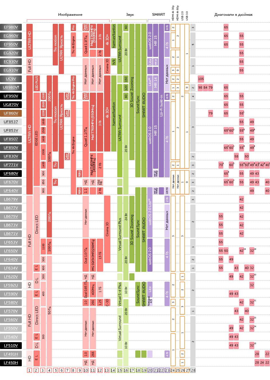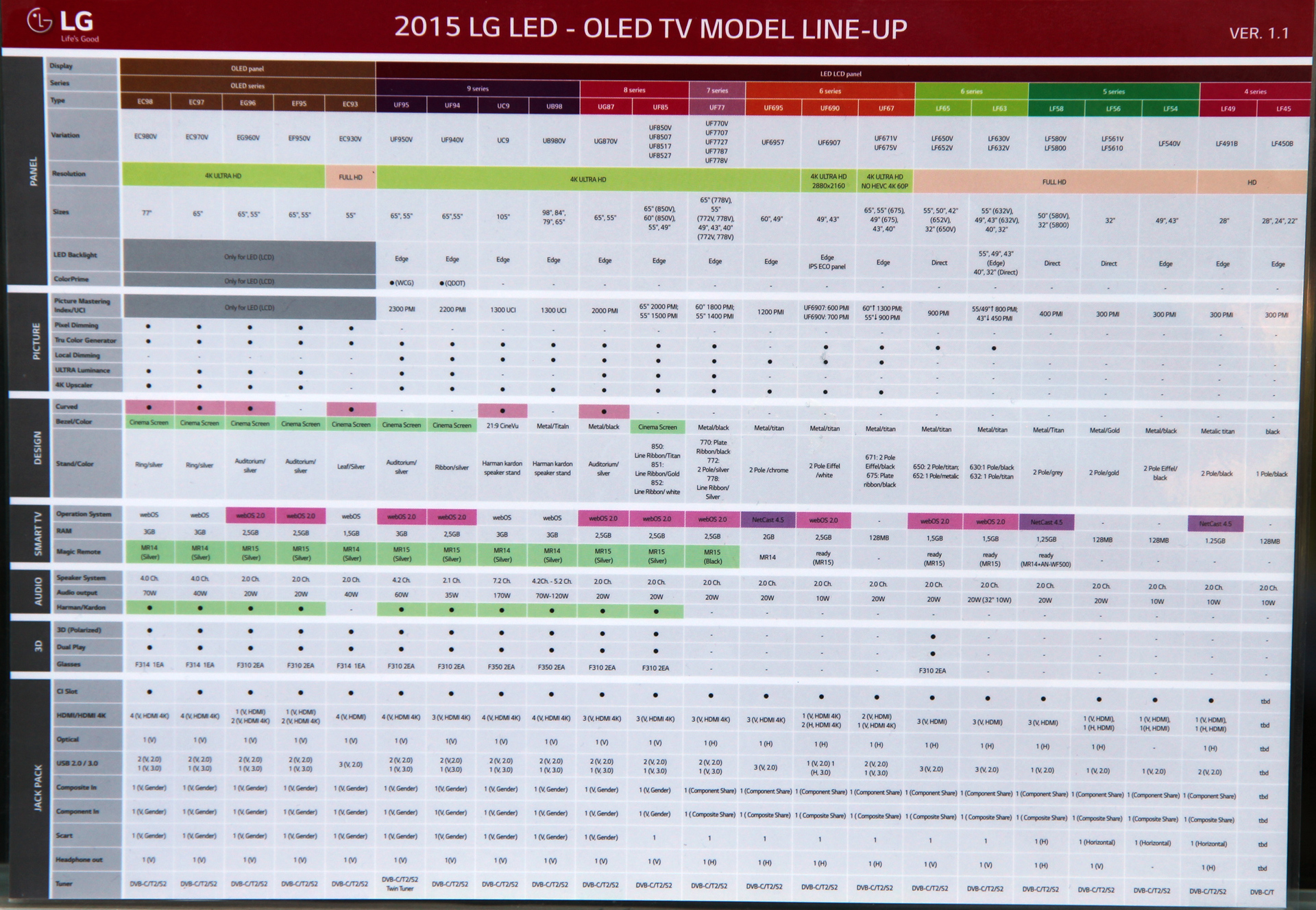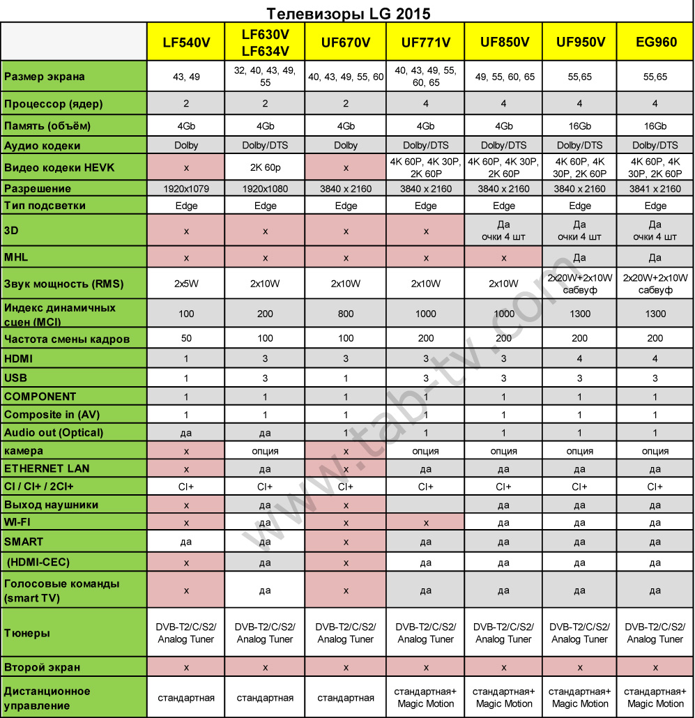 Сравнительные таблицы телевизоров, где наглядно можно посмотреть различия между моделями ТВ LG 2015 года: