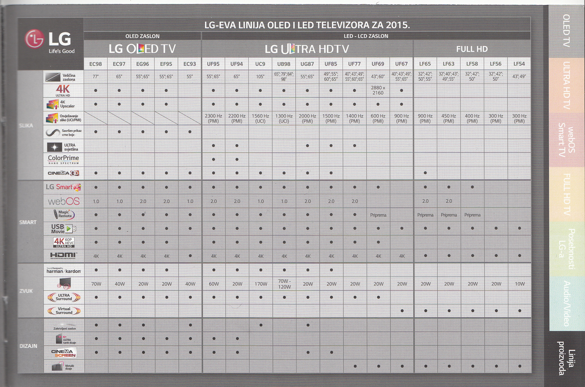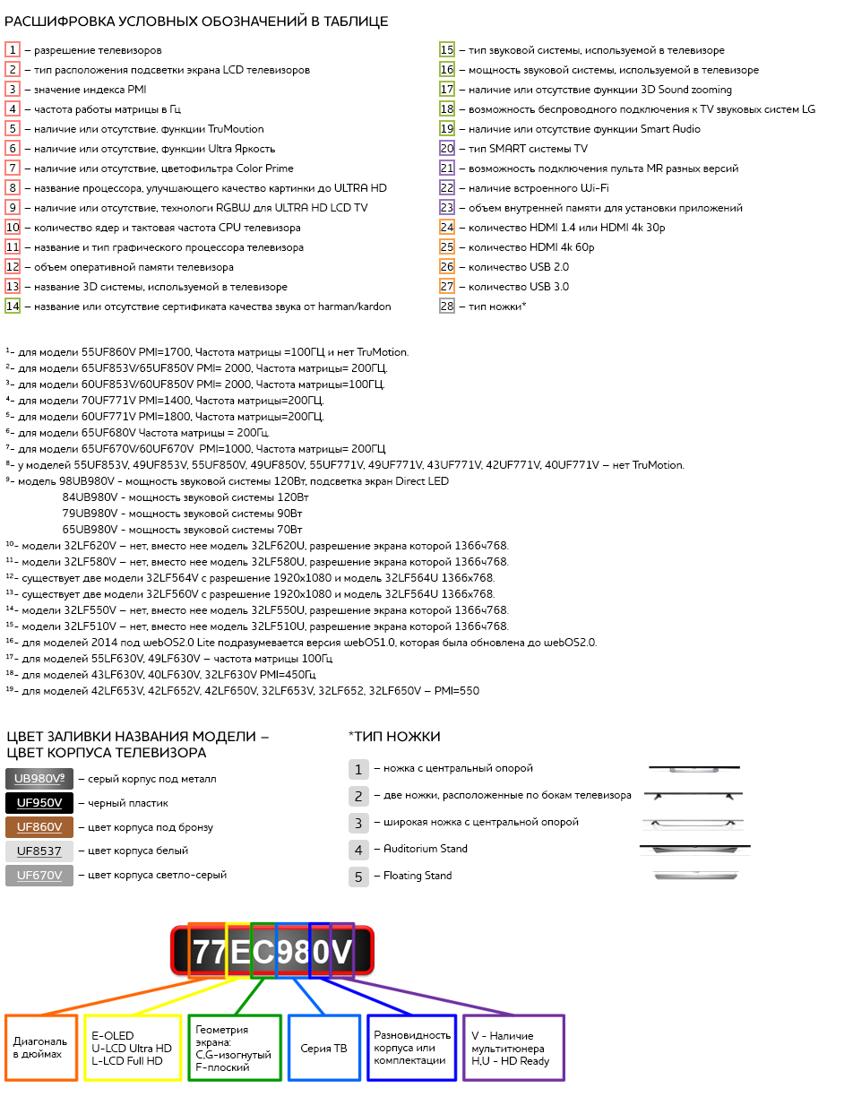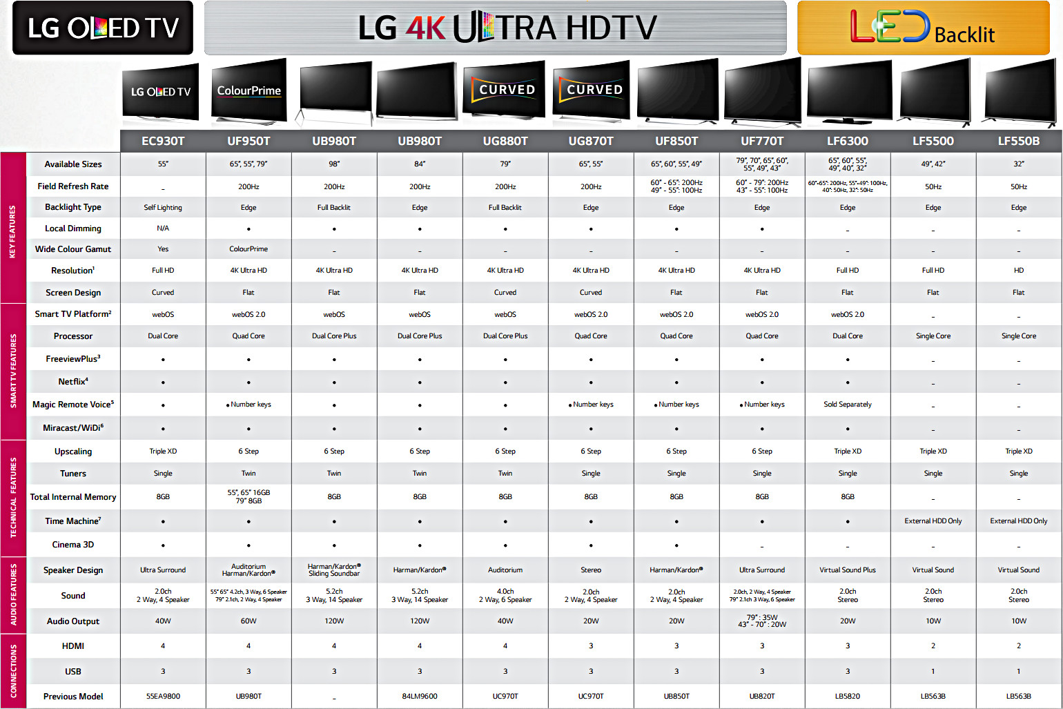 Сравнительные таблицы телевизоров, где наглядно можно посмотреть различия между моделями ТВ LG 2015 года: