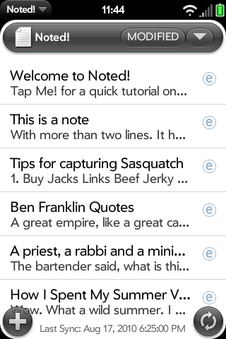 Описание: версия популярнейшего приложения для ведения заметок Simplenote для платформы webOS. Напомним, что Simplenote это невероятно удобное приложение для создания и хранения заметок. Причём, все заметки тут же синхронизируются со специальным сервером Simplenote. Вы можете получить доступ к своим заметкам откуда угодно: с любого компьютера через браузер, с Palm Pre или Palm Pixi. Вся синхронизация происходит невероятно быстро и практически незаметно.