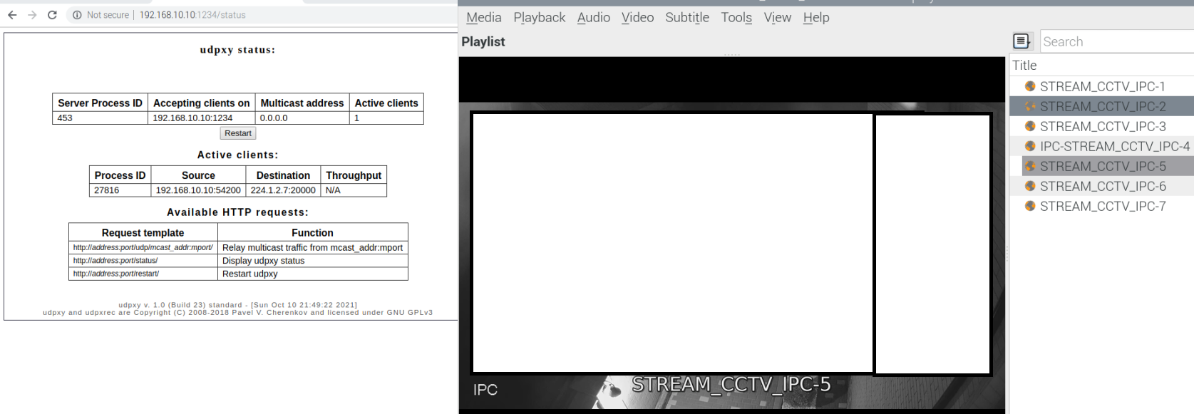 1 - на нем я поднял udpxy для передачи данных из сетевого потока мультикаст канала вещаемого по UDP в HTTP-соединение запрашивающего клиента.