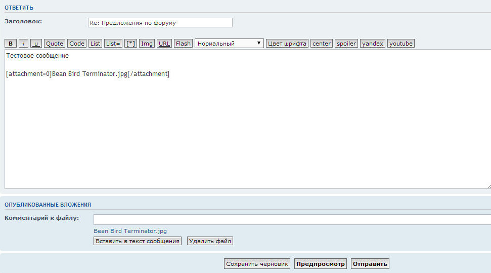 Теперь вы можете разместить файл(ы) в нужном месте своего сообщения посредством кнопки "Вставить в текст сообщения".