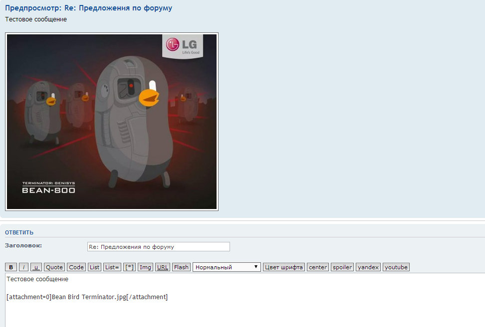 Теперь нажмите кнопку "Предпросмотр" для предварительного просмотра сообщения; если все устраивает, "Отправить" - для публикации сообщения.