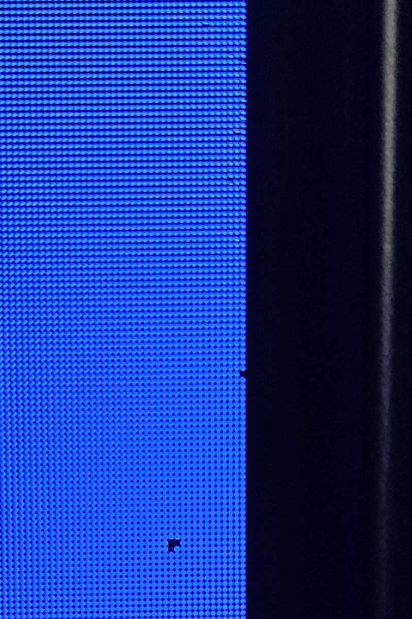 Оставил заявку на ремонт. Приходил мастер, но что-то как-то он не настроен был менять панель, хоть и взял её с собой. Про 16 точек и 2 рядом ничего не слышал, пришлось открывать сайт и показывать, но и это не убедило. В итоге сказал, что надо согласовывать и уехал. По телефону поддержки тоже про 16 точек ничего не говорят, а сказали, что решается в частном порядке. У меня проблема хоть и небольшая, не так сильно заметно, но всё же я их замечаю периодически даже с 2м. И это через полтора года после покупки тв. Модель 55b8. Фото на белой и синей заливке в одном месте, рядом две и три точки соответственном. Там же видно, что выше тоже есть проблемные точки. На зелёной заливке верхний левый угол. Повилась полоса из чёрных точек в самом углу по первому ряду пикселей. Но эта полоса, похоже, иногда пропадает. Дополнил свою заявку этими фото. Жду вестей от поддержки. Видимо, придётся напрячься, так как мастер с ходу менять не стал, сделал пару фото и заполнил бумагу какую-то. Посмотрим, что из этого выйдет.
