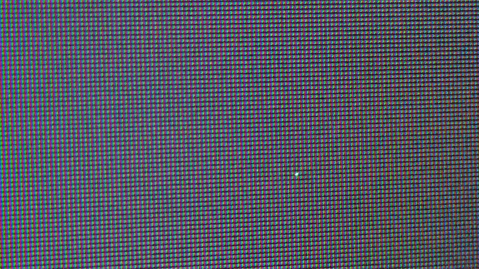 Как правило с расстояние 1.5 метра и более не видны никакие отдельные суббпиксели кроме белого. Белый негорящий почти всегда будет заметен на светлых фонах, заливках неба или снегу как черная точка. Все остальные цветные не так заметны.
