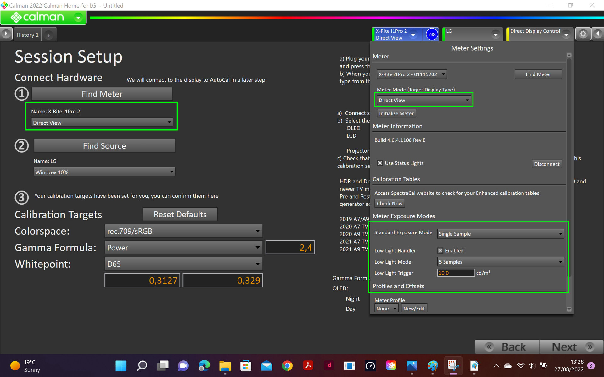 2 - Затем подключил спектр i1Pro2, а также мой телевизор LG C1 к той же сети Wi-Fi, что и мой компьютер, с указанием правильной цели калибровки:
