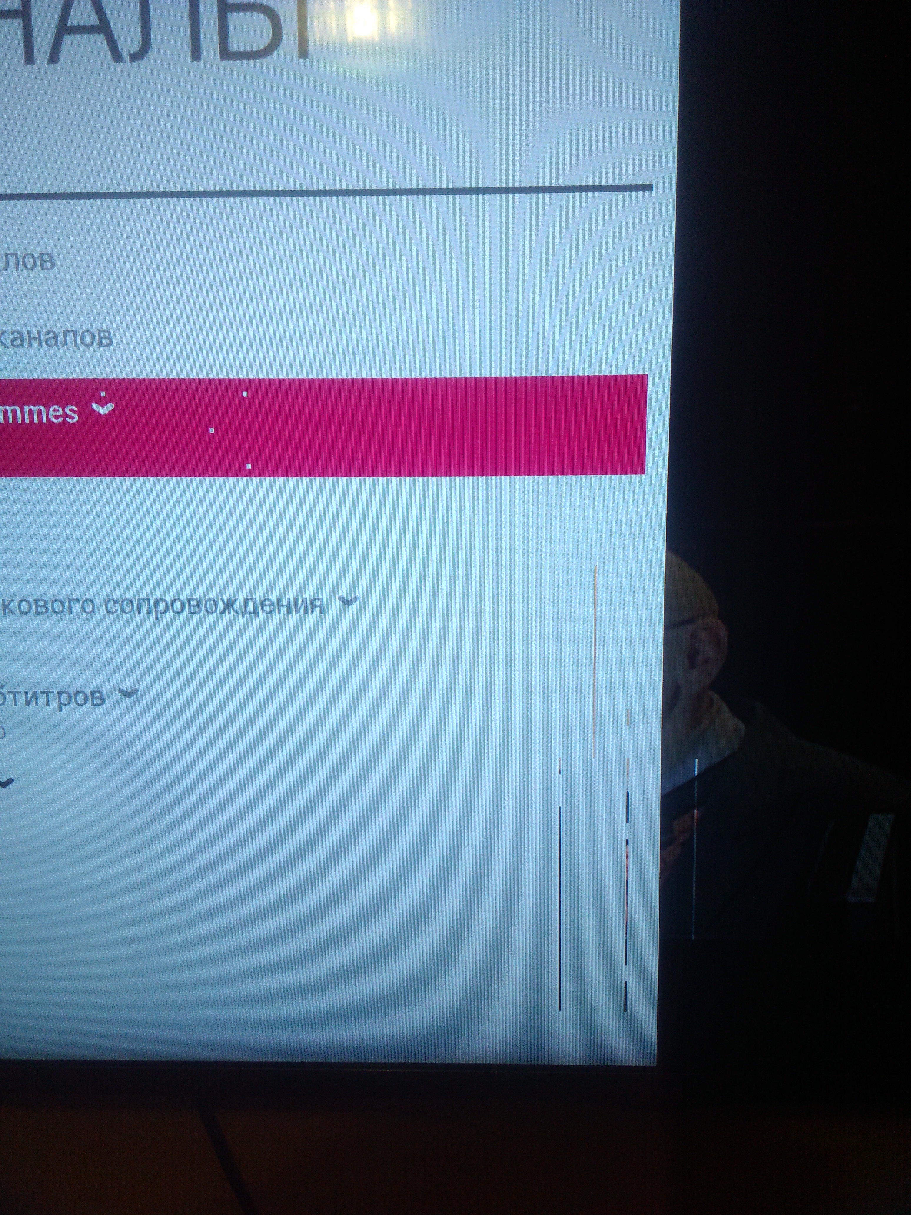 Купил телевизор LG 42LB673V и где то через неделю покупки увидел как типа пиксели гуляют по телевизору. Но самое интересное они толька в приложениях smartTV, а в настройках так вообще полосками. Помогите советом что делать. фото прилагаю.