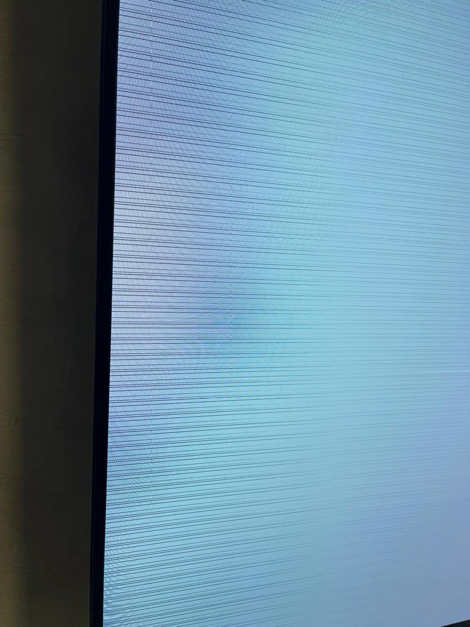 Фото сделаны на белом экране. Во время просмотра, на меняющихся картинках, полосы были менее заметны. Также иногда они пропадали при очень долгом просмотре. Чаще всего полосы пропадали пока играешь в игры с высокой частотой кадров)) поэтому мы сначала «лечили» телик играми, а потом уже смотрели кино без полос)) но конечно со временем этот лайфхак работал все хуже и полос появлялось больше.