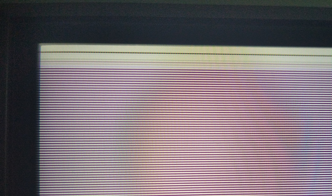 по всему экрану блеклые полосы, в нижней половине черная мерцающая полоса на всю ширину, слева эта полоса становится белая.