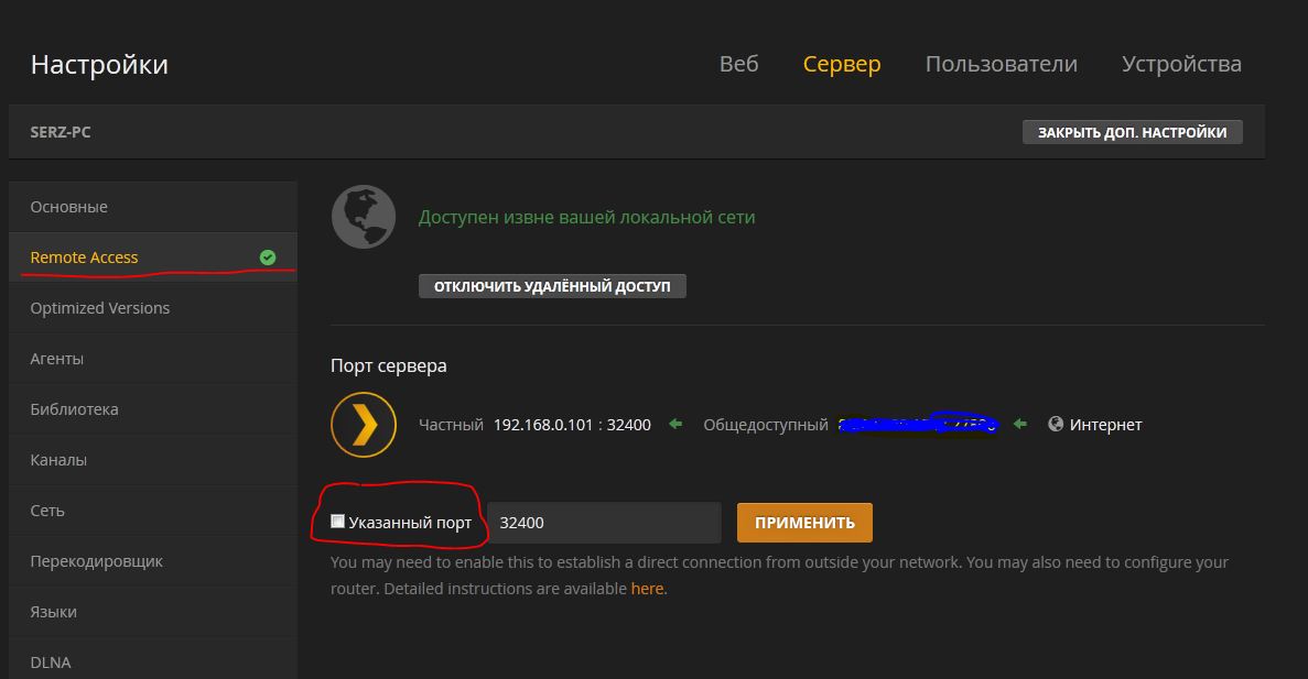 lalalakukuku писал(а):Ну пока это проявилось один раз. Сейчас собрал новый сервер на win7. подключился, несколько дне было в норме, а вчера слетел адрес, на другом компе Plex не был запущен, но видать что то смешало карты. Сегодня запустился без проблем. Просто если слетает - вписываю правильный адрес.