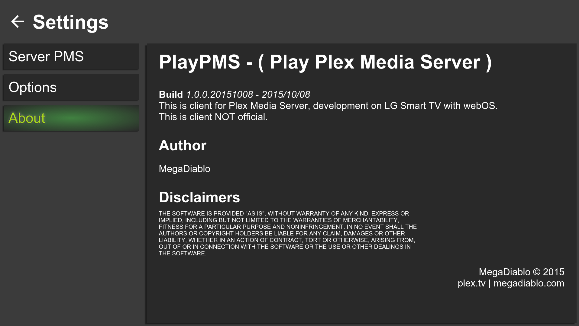 Я разрабатываю альтернативу для приложений PlayZ и XPlay. Так сказать это мое виденье клиента для Plex Media Server (PMS), установленного в вашей локальной сети. Данный клиент ориентирован на телевизоры LG Smart TV с операционной системой webOS. Я разрабатываю этот клиент персонально для себя, но так же хочу поделиться им с Вами.