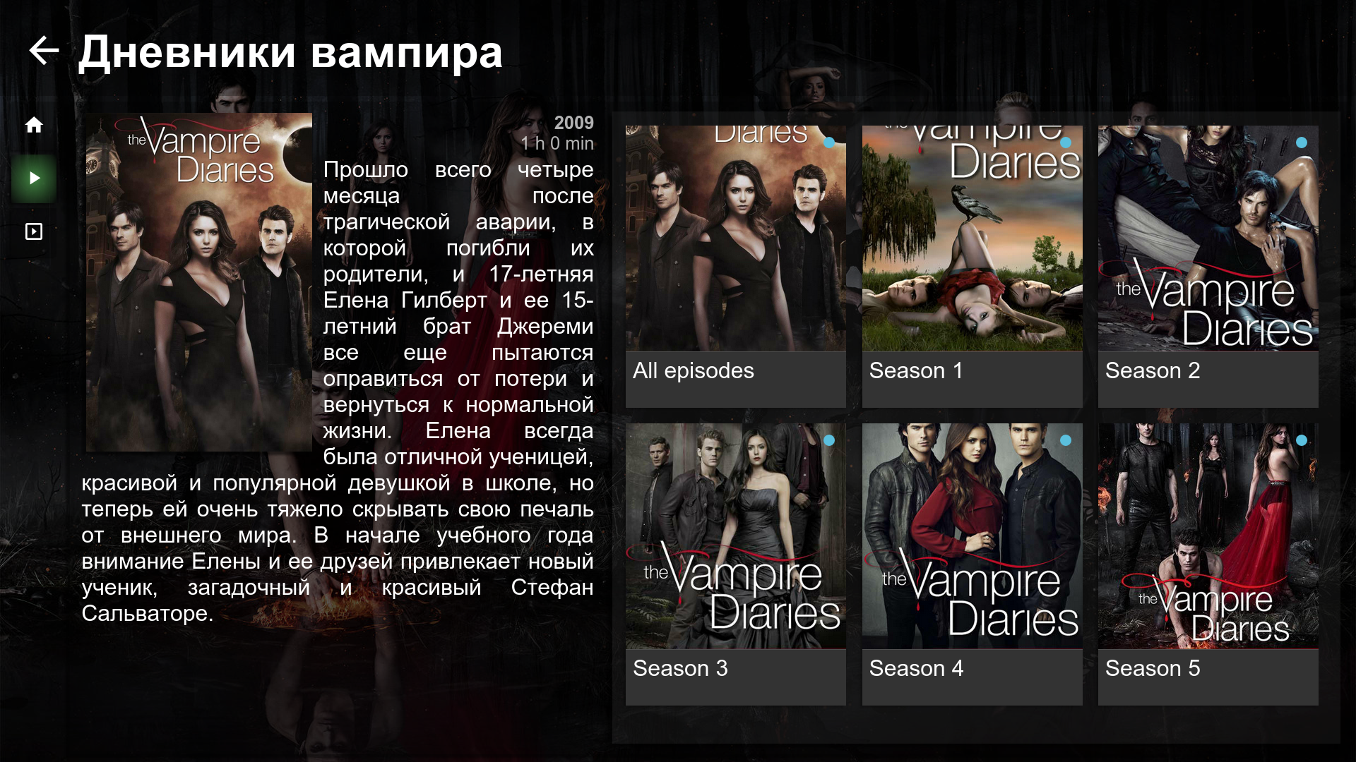 - Отображение сезонов у сериала, а так же отдельных эпизодов у сезона