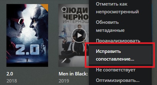 Вот глянул вашу картинку и по ней загрузил что там не распознавалось. Получилось так. И очень странно что нет "Исправить сопоставления". Ну и конечно уже не один раз убеждаюсь что агент кинопоиска так себе. Штатные плекса как сами видите работают намного лучше ;) А если применительно к фильмам то Plex Movie Scaner вообще практически идеально работает