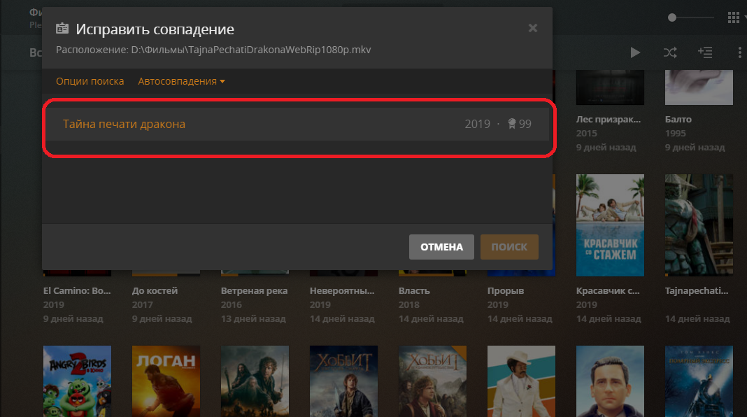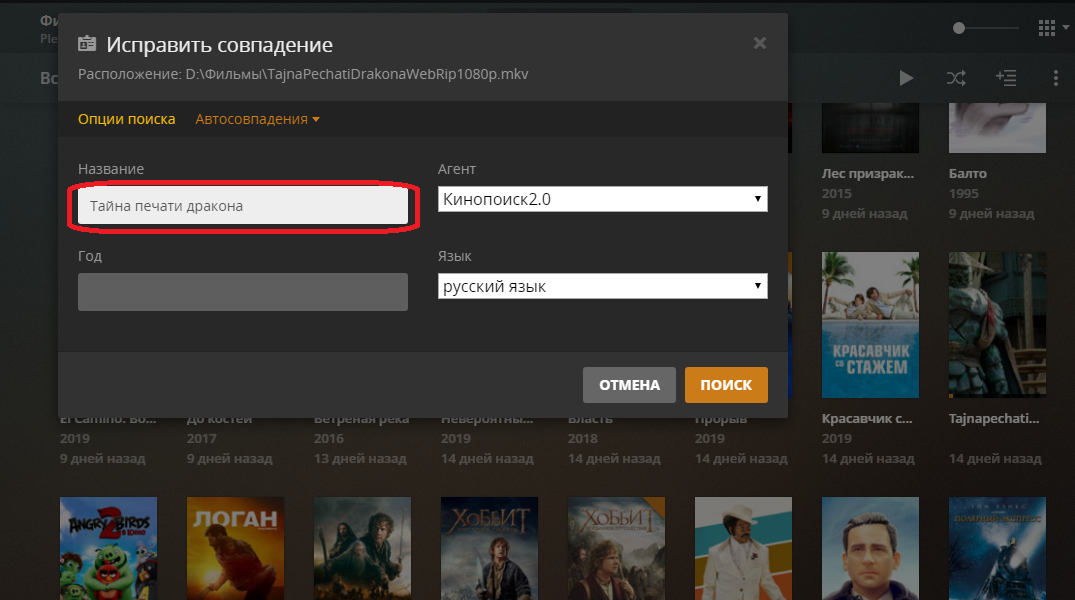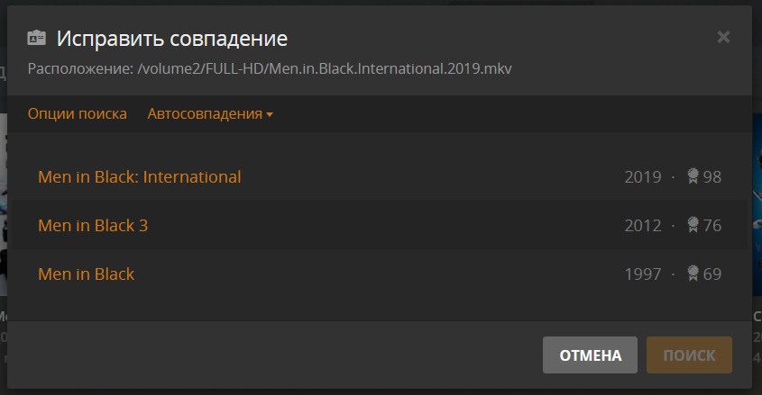1. Как принудительно сказать плексу, какой именно фильм у меня в папке лежит? Например, у меня есть фильмы https://www.imdb.com/title/tt2063013/ и https://www.imdb.com/title/tt1436045/, а он упорно думает, что это совсем другие фильмы. Я уж и названия файлов менял, и принудительно в библиотеке в свойствах файла название менял - всё бестолку.