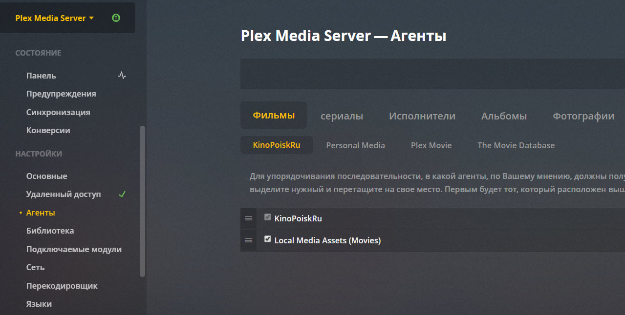 Агент кинопосика устанавливается в Plex и подбирает правильные сопоставления для скачанных фильмов (на русском).