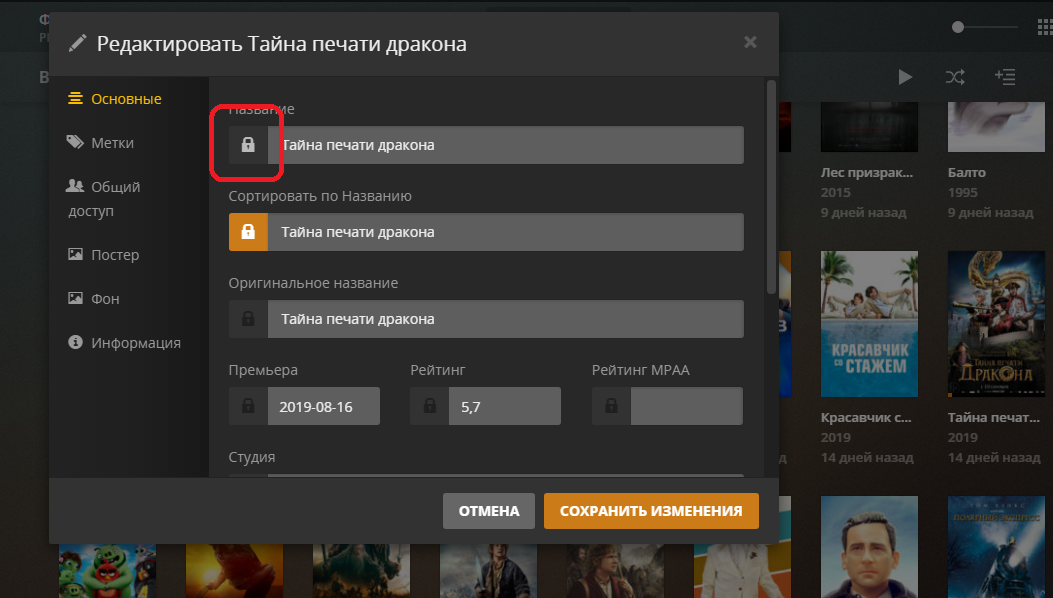 В общем немного разобрался, как принудительно дать имя фильму и описание от кинопоиска.