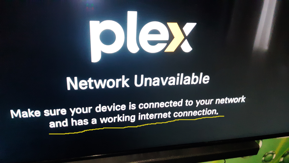 ) не знаю, что у вас там норм. Но если на ТВ нет интернета (достаточно на ТВ изменить ip шлюза), то клиент plex на ТВ просто не запускается с ошибкой "Network Unavailable".