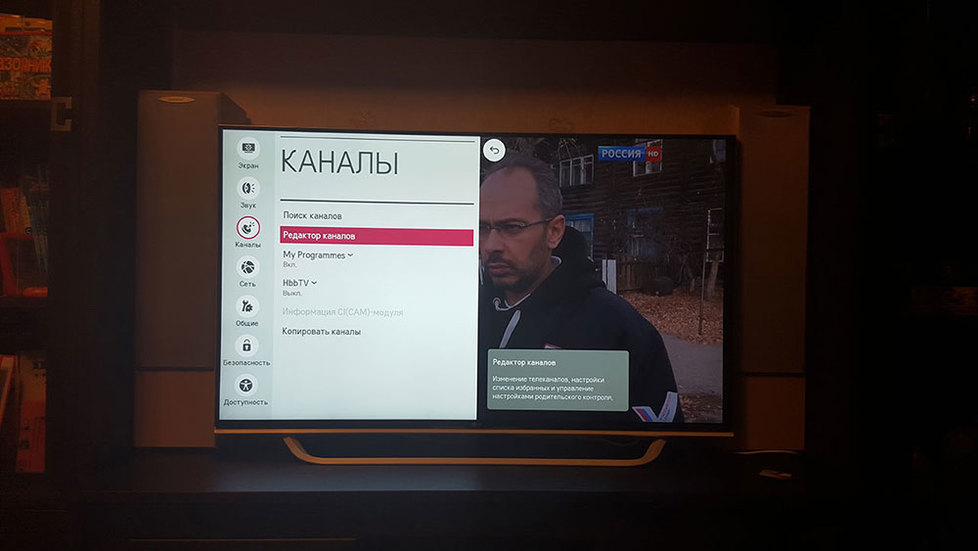 Кстати, обратите внимание, что в основном меню модели 2015 г. пункты меню идут немного в другом порядке: Экран - Звук - Каналы..., а в моделях 2014 г. Каналы - Экран - Звук..,