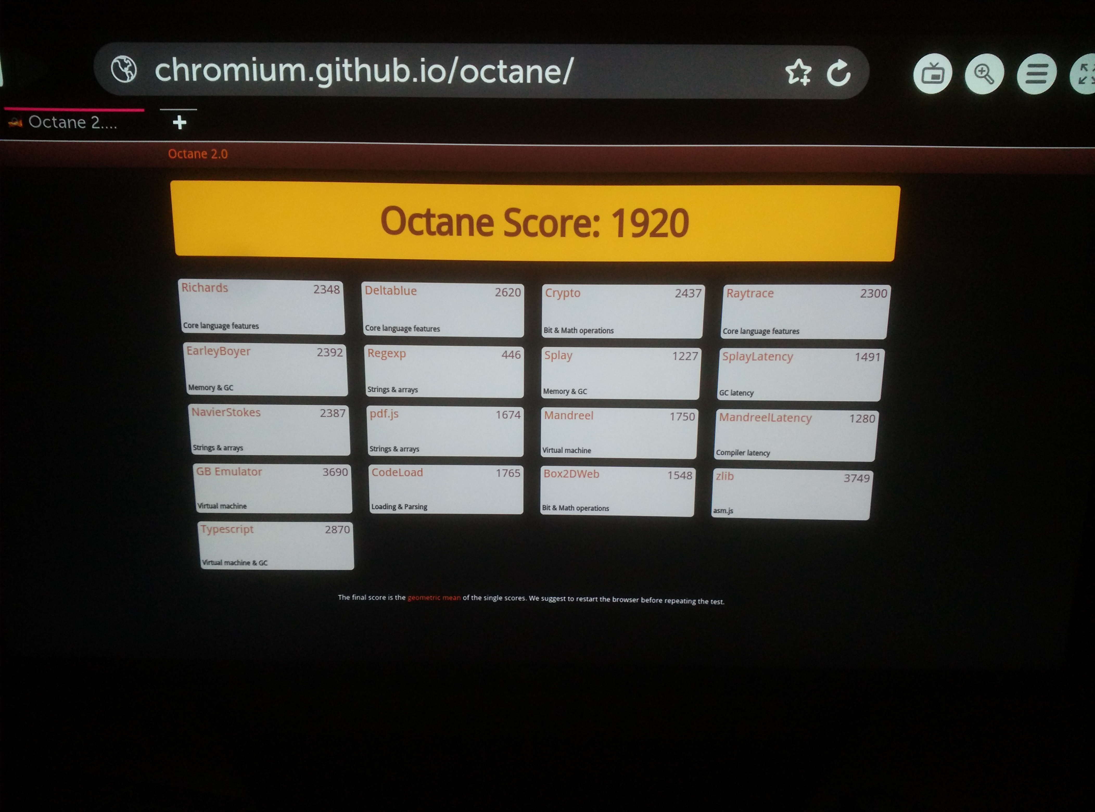 Octane 2.0 является последней версией браузерного бенчмарка от Google. Он содержит набор типовых испытаний для определения поддержки программой всех передовых технологий и скорости их выполнения. После запуска теста ваш браузер проходит ряд последовательных заданий, в результате чего ему будет выставлена финальная итоговая оценка.