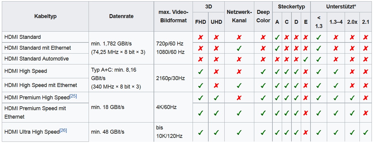 Современные HDMI кабели бывают следующих видов: