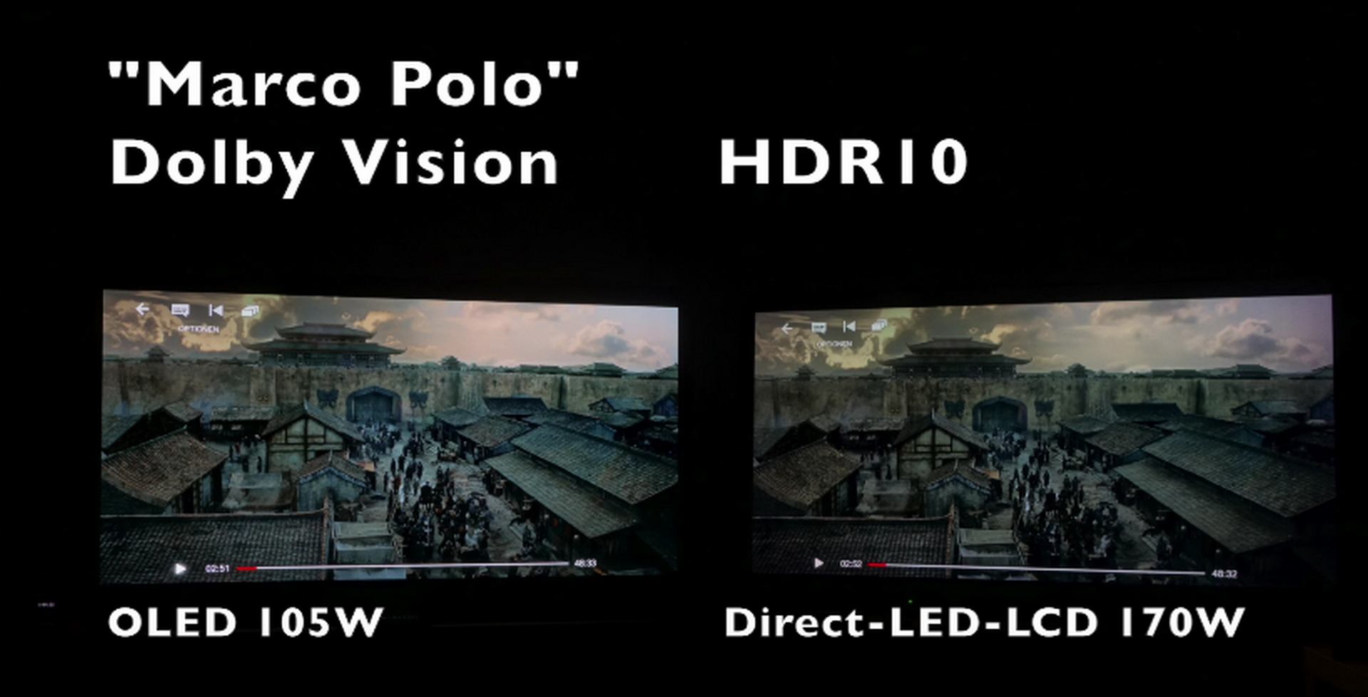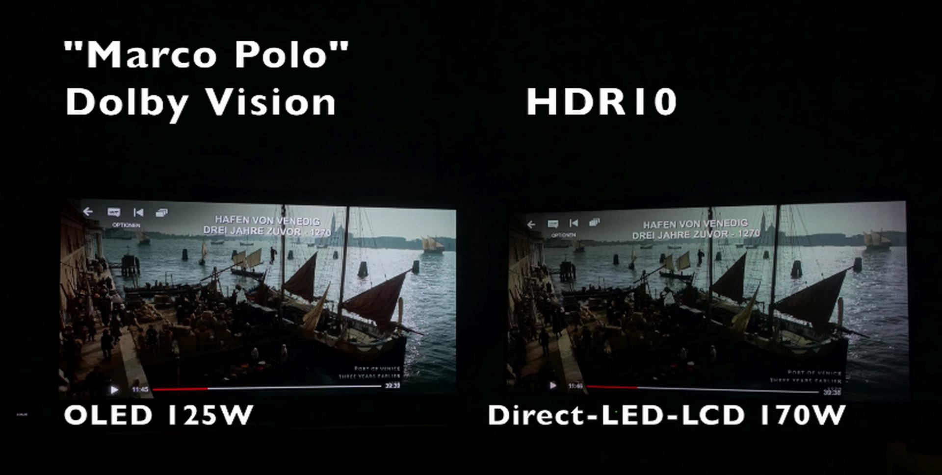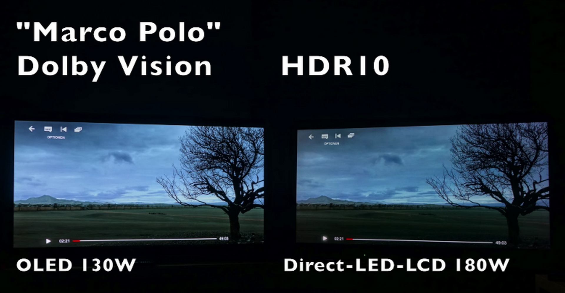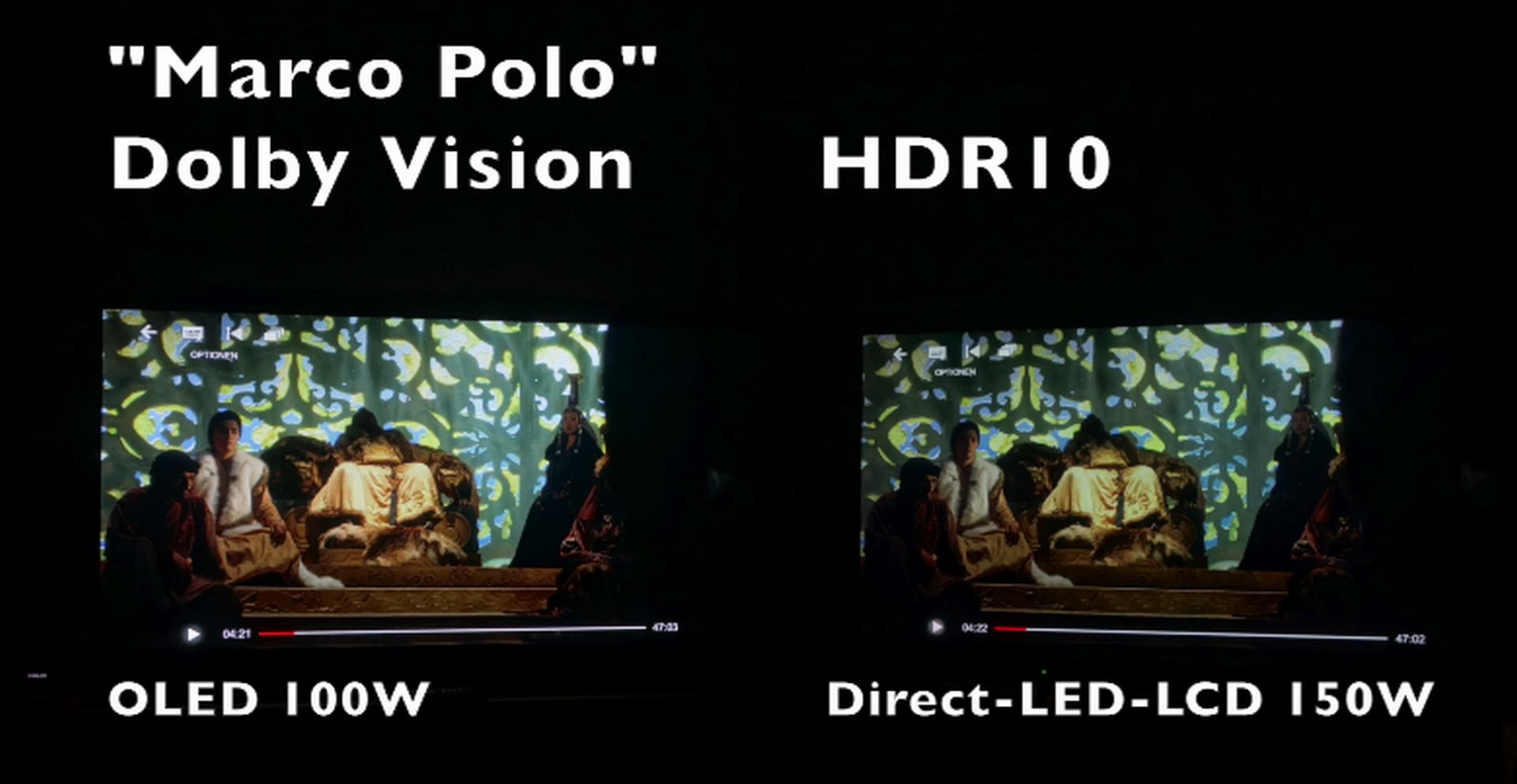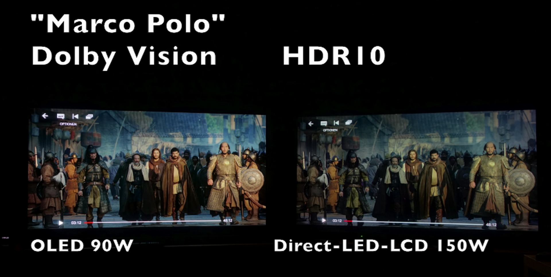 Прямое сравнение Dolby Vision + OLED против HDR10 + FALD(онлайн Марко Поло):