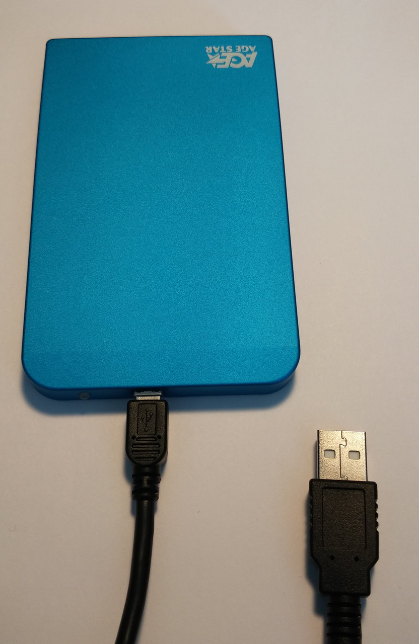 - Жесткий диск в мобильном корпусе AgeStar SUB2O1 с подключёнными проводами