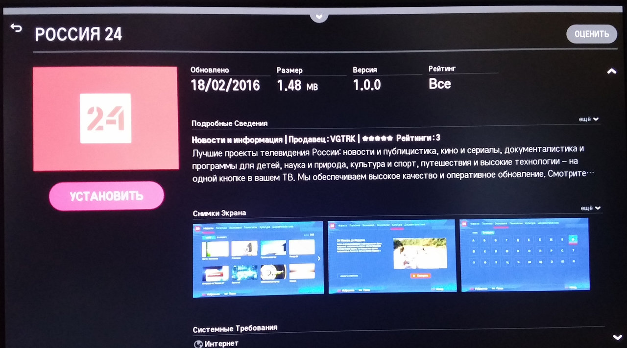 Загрузить программу могут все владельцы смарт-телевизоров LG, выпущенных в последние годы, в магазине приложений LG Smart World. При этом поддерживаются устройства на современной платформе webOS. "Россия 24" для смарт-телевизоров LG бесплатно доступно на территории России и стран СНГ.