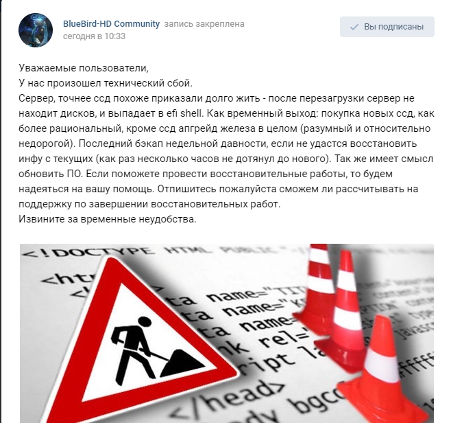 Админы пишут, что полетели SSD накопители на сервере. Бекап есть только недельной давности.