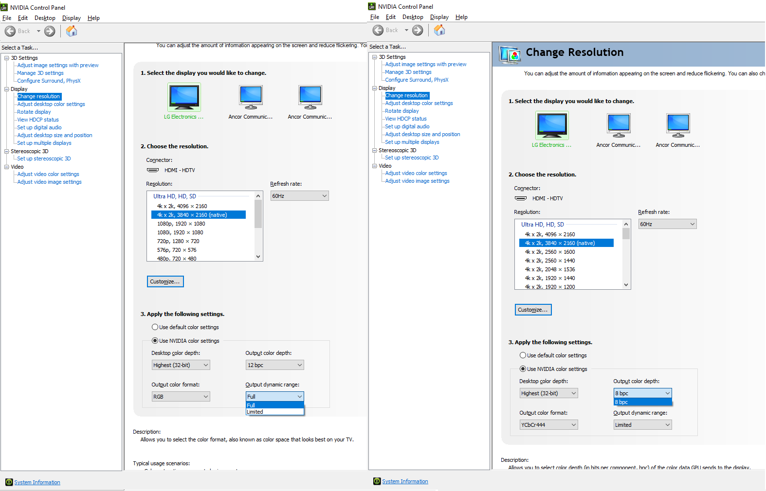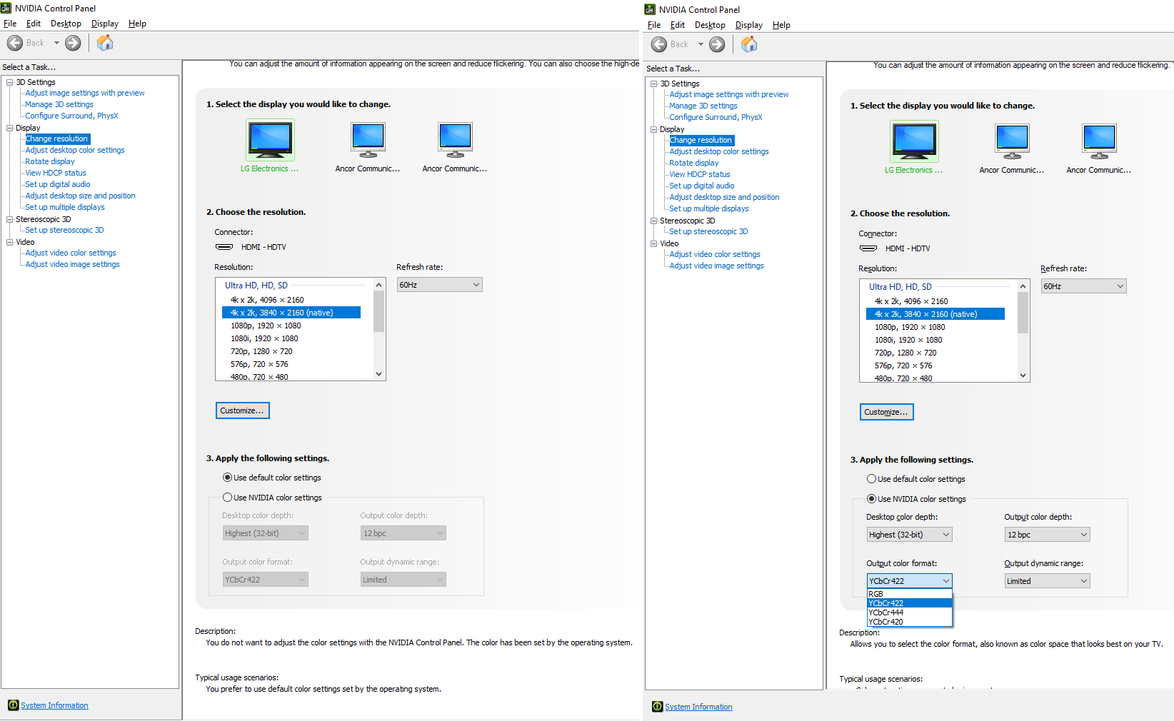 А в NVidia Control Panel есть ручная настройка цветности (4:4:4 и т.д.). И как лучше эти настройки скомбинировать для лучшего отображения фильмов на ТВ?