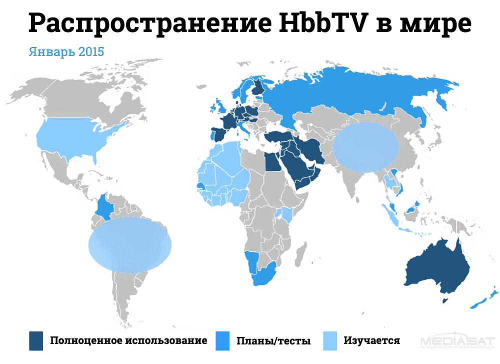 Пока что технология HbbTV поддерживается телекомпаниями следующих европейских стран: Германия, Австрия, Швейцария, Испания, Нидерланды, Люксембург, Франция и Польша. HbbTV также тестируется в таких странах как Италия, Норвегия, Португалия, Россия, Швеция и ЮАР. В США обсуждается возможность использования системы. В России компанией «Российская телевизионная и радиовещательная сеть» готовился проект по внедрению HbbTV в 2014 году. Текущее состояние проекта не известно. На территории Украины HbbTV уже работает у провайдера Лыбедь ТВ.