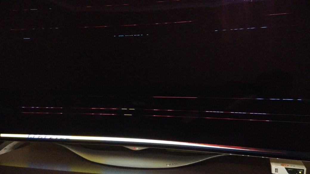 Отсутствует изображение почти полностью, только в нижней части экрана (маленькая полоска) есть. При этом присутствуют мерцающие полоски.