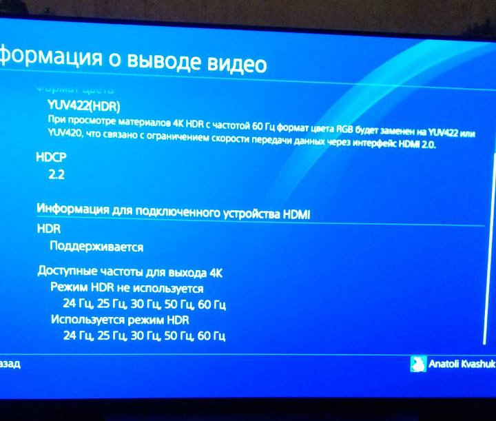 Толян8879 писал(а):У меня с PS4 вот такая проблема - в играх с HDR меняется настройка. Может подскажете? Буду очень признателен!