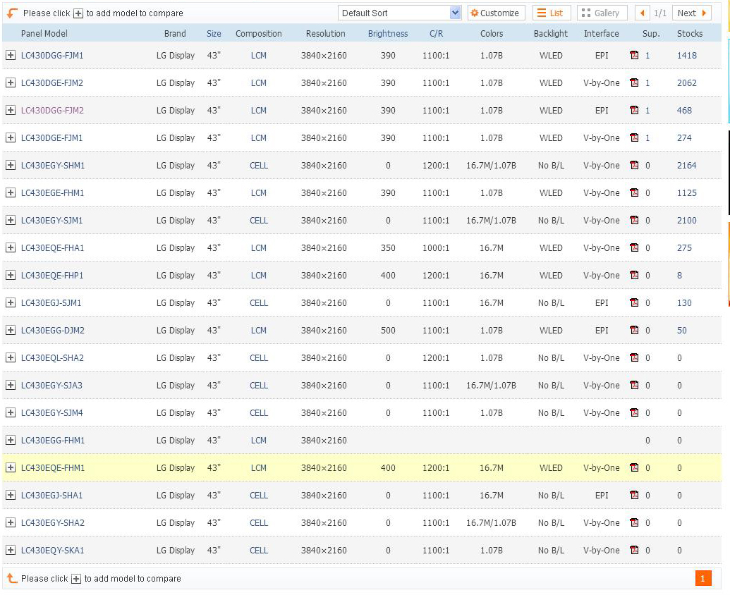 V - LG Display Co.Ltd. IPS WUD SBA1/SBA2;