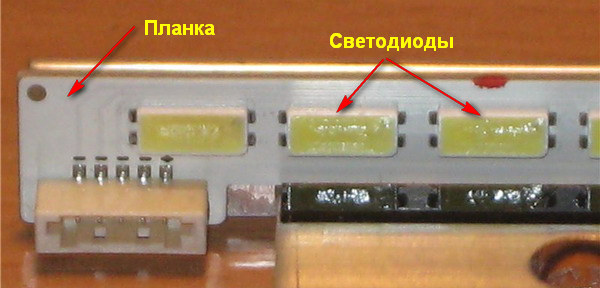 Такая планка очень сильно нагревается, поэтому её подложка - металлическая, она плотно крепится к металлическому контейнеру матрицы, который служит теплоотводящим радиатором. Замена одного, вышедшего из строя, элемента - весьма затруднительна, а зачастую - просто невозможна, приходится менять планку целиком.