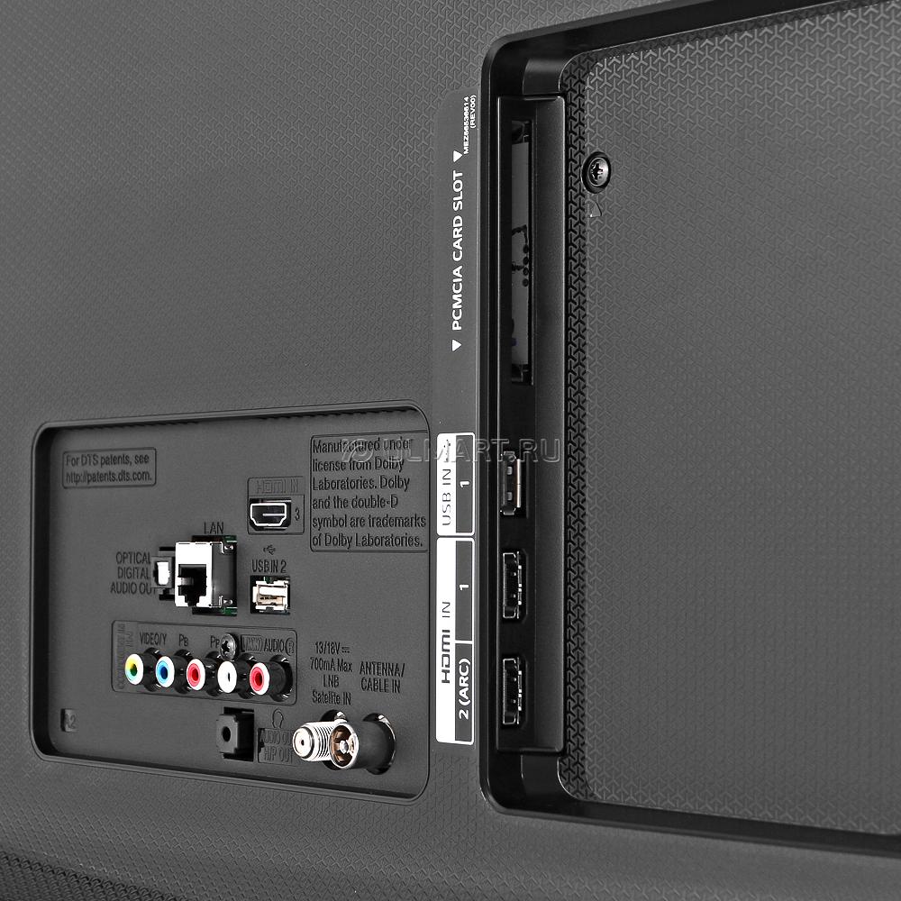 Так же у телевизора присутствуют уже морально устаревшие "тюльпаны" и порт для установки модуля условного доступа от провайдера спутникового или цифрового кабельного телевидения. Естественно, у телевизора так же имеется порт RJ-45 для подключения роутера посредством патч-корда и два антенных входа для спутника и обычного ТВ.
