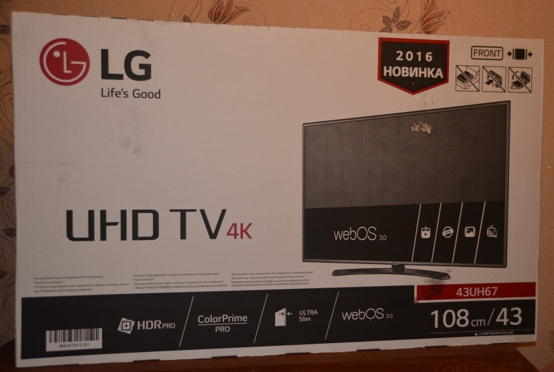 Итак, мой выбор пал на телевизор марки LG модель 55UH671V. Все, что мне было нужно, там присутствовало. Но, к сожалению, этой модели с диагональю 40 или 43 в каталоге не было. Хотя я точно знал, что такая модель с экраном 43 имеется у производителя. Пользуясь случаем, хочу поблагодарить работников отдела продаж магазина "Онлайн-Трейд", которые по моей просьбе сделали так, что модель 43UH671V вскоре появилась в каталоге. Собственно, ее я и взял.
