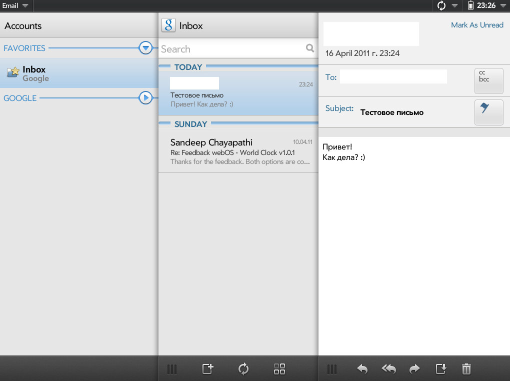 Прежде всего, веб-браузер переименован из "Web" в "Browser". Мы уже имели возможность видеть Браузер и виртуальную клавиатуру во время презентации Think Beyond в феврале, но все это было на рекламных предрелизных фотографиях. Теперь же у нас есть скриншот! На нем не много нового, все же это ближе к реальности, чем реклама . О браузере мало что можно сказать,только то, что он имеет весьма минималистский дизайн. В правом верхнем углу находятся кнопки, которые отвечают за новые вкладки, сервис "поделиться", историю, и закладки.