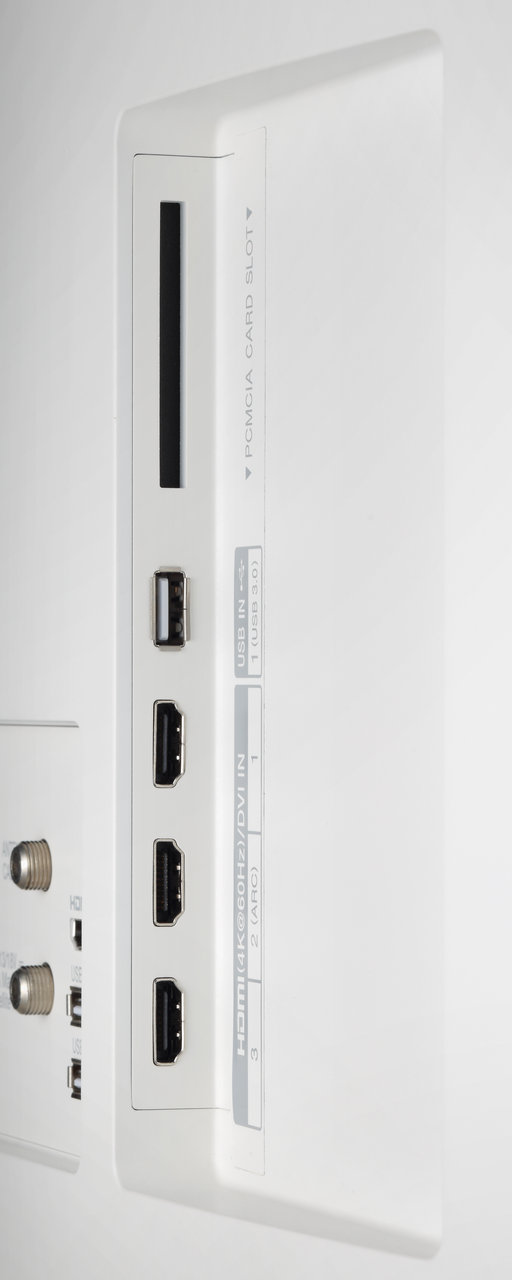 Боковая панель оснащена двумя HDMI входами (один из которых совместим с ARC), одним разъемом USB 3.0 и слотом условного доступа CI+. Кроме того на борту имеется встроенный Wi-Fi модуль (с поддержкой стандартов 802.11a, 802.11b, 802.11g, 802.11n, 802.11n 5 ГГц, 802.11ac, Wi-Fi Direct).