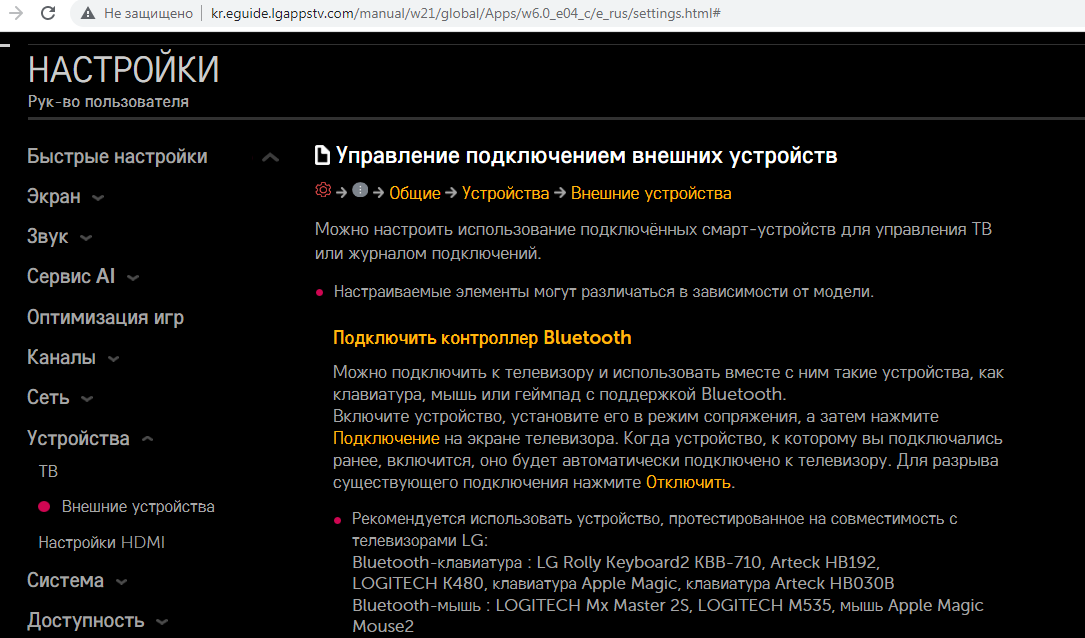 Рекомендуется использовать продукт, проверенный на совместимость с телевизорами LG.